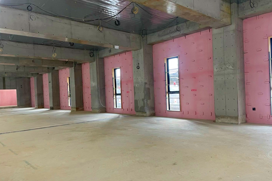 この耐火被覆工事とは、耐火性・断熱性の高い材料で骨組み(柱・梁)を被覆する工事を行います。